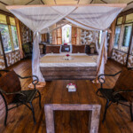Follow the path underneath the overgrown pagoda through the colourful gardens to your seafront cottage, hidden behind an antique Zanzibari door. Each cottage is surrounded by walled tropical gardens to guarantee complete privacy, opening up to the ocean with breathtaking views on the ever-changing hues of blues. Enjoy your morning coffee in tranquility on your veranda or take a snooze in the afternooon on your private beach. Our spacious seaview rooms on the first floor above the reception are ideal for single or triple occupation.